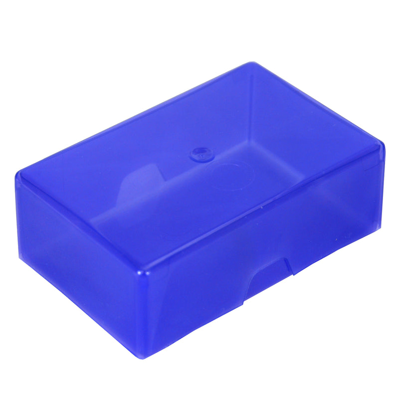Plastic business card box for presentation or storage of up to 125 business cards. A simple two part design - the lid slides over the base - means no breakable catches or hinges. This box is great for organising arts and crafts materials like sequins or beads and is equally useful in the workshop for keeping small items like nails and screws safe.